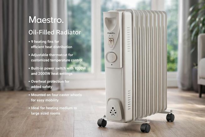 Grzejnik olejowy Maestro Grzejnik olejowy Maestro to praktyczne i niezawodne rozwiązanie do ogrzewania domu, mieszkania ...